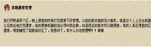 2、 如果有人在上机过程中因为某种原因离开了,但是并没有到前台结账,而他的预交费余额中还有剩余,但是这台机器被重启了,那么当用别的卡登录这台机器时,也会出现这种情况,原因同上;