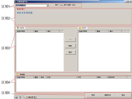 区域3用于选择确定所购买卡的面值和购买数量,区域3左侧列出所选择卡的所有面值,选中想要购买的某种面值,点击区域3中间的-〉按钮,即可将其添加到右侧窗口中,如下图: