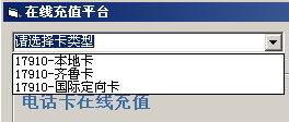 区域1中的选择框用于选择卡类型,也就是通过本系统可以销售的产品,点击下拉菜单,可以看到如下的选择: