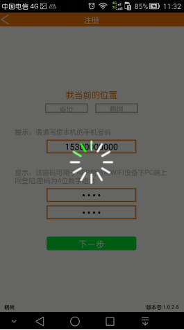 ② 点击“注册按钮”,进入注册流程,输入手机号,设置上网密码。