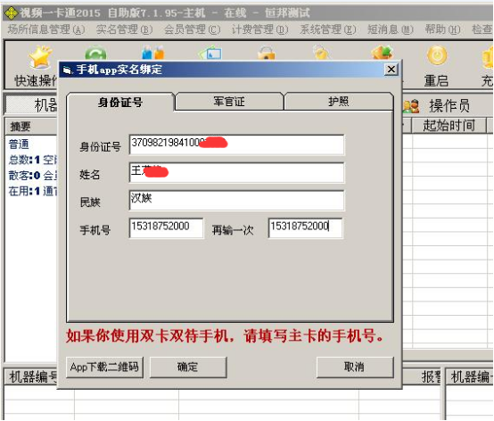 上网人员至网吧吧台,刷身份证,绑定手机号。