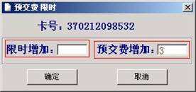 对后付费模式,则只需在限时增加栏中填写需要增加的限时即可,同样,在预交费增加栏中不必填写任何内容。