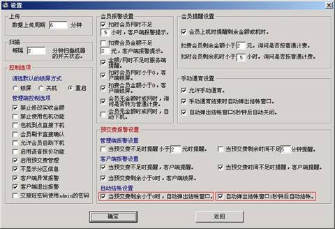 如果希望在包机结束后立刻结账下机(客户机也将按照预先的设定锁屏、重启或关机),应在系统管理—〉系统设置菜单中作如下设置: