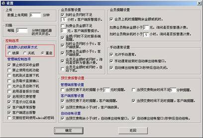 顾客下机结帐之后,客户机可以采取三种锁屏方式:锁屏、重启和关机。该选项可以在系统管理—〉系统设置中如下图所示的位置进行选择。
