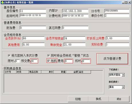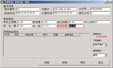 此时如果用户未提出任何要求,则可以双击界面中该用户的记录,手工将其结帐下机: