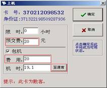 选中上图中的禁止使用包机功能后,在刷卡的时候就不能再点包机了。当然,如果是网吧业主本人或者信得过的人收费,可以再次启用该功能。