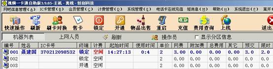 选择是(Y),将把该客户机锁屏,但是并不结账,而别人也不能在该机上登录。从服务器端上看,该客户机将显示为红色的空闲状态: