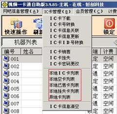 上网卡在使用过程中某些信息和状态会发生变化,比如原来正常使用的上网卡后来挂失了,密码修改了,因违反实名上网制度导致该卡被锁定或冻结等。在发生了这些变化之后,原来下载的IC卡信息可能会因未能与这些变化同步更新而导致某些卡不能继续正常使用,如刷卡时提示“密码错误”、“该卡在本网吧不能使用”等,此时可以尝试使用IC卡信息更新功能,使得这些卡的状态及时得到更新。