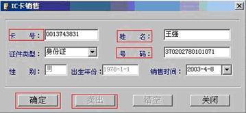 首先在卡号栏里点击一下鼠标,使光标置于其中,在读卡器上刷卡输入卡号,然后在姓名栏和号码栏里按照购买人的身份证信息正确填写相应的内容,点确定按钮,会弹出设置卡密码的窗口,由购买人本人输入卡的密码,然后点击卖出按钮即可。
