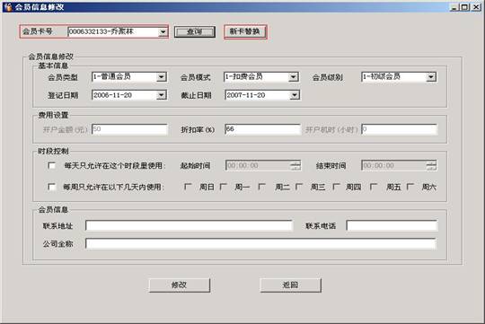 会员修改用于修改特定会员的具体信息,以及卡挂失后的余额转移,在前文挂失IC卡中已经讲过,此处不再重复。