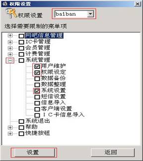包机功能允许以低于正常单价的优惠价格上网,该功能在给网吧的经营带来灵活性的同时,也给网吧业主雇佣的收银员提供了可能作弊的机会。为防止这种情况发生,网吧业主可以选择不允许收银员使用包机功能。应在系统管理—〉系统设置菜单中作如下设置: